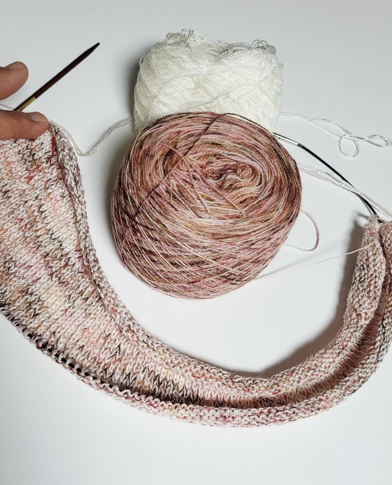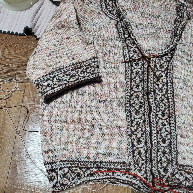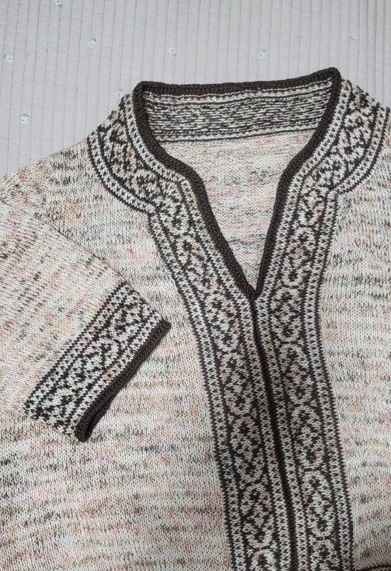 이번 작품은 메리야스뜨기를 극복해야만 배색을 할 수 있는 옷이에요.